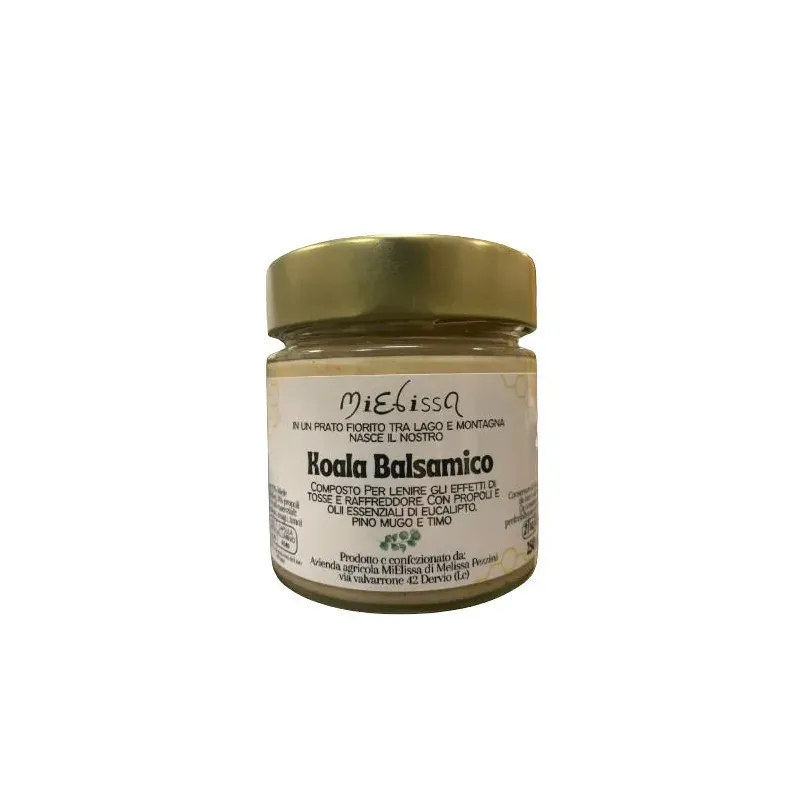 Mittel zur Linderung von Husten und Erkältungen auf der Basis von cremigem Blütenhonig mit Propolis und ätherischen Ölen von Eukalyptus, Latschenkiefer und Thymian - Gewicht 250 g Extrahierter, aufbereiteter und kalt verpackter ITALIENISCHER HONIG aus dem Gebiet Orobic - Lombardei