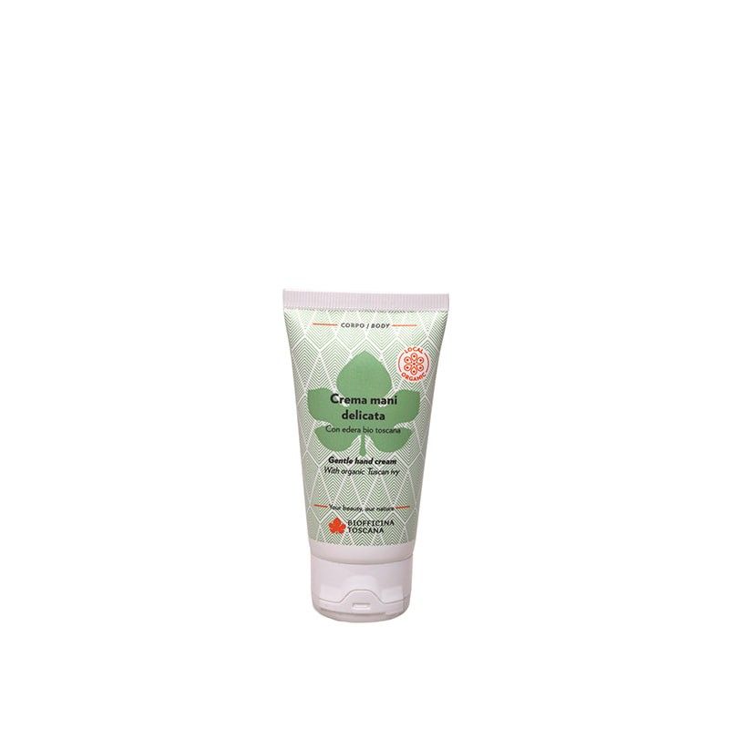 With organic Tuscan ivy 50 ml A moisturizing, light and gentle hand cream. With organic Tuscan ivy combined with emollient, protective substances such as organic hemp oil, squalane and urea. Leaves hands soft and pleasantly scented with hints of underbrush.