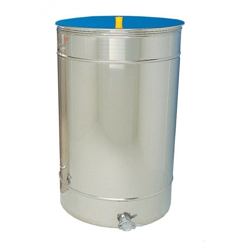 MÁQUINA DE MIEL DE ACERO INOXIDABLE 400 kg de capacidad con soldadura TIG - Diámetro 62 cm - Altura 102 cm Con virola roscada para la conexión del grifo de rosca - Tapa de acero inoxidableTapa de acero inoxidableDiámetro del grifo de rosca 40 mm a elegir entre:- Grifo de plástico/nylon (QI R05)- Grifo de acero cromado (QI R03)- Grifo de acero inoxidable (LA 6370)