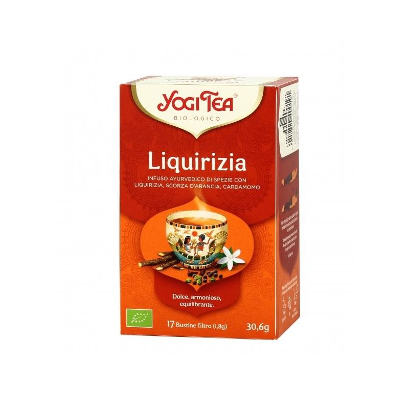 Con piel de naranja y cardamomo. Yogi Tea Liquorice, 100% orgánico y natural, es una extraordinaria mezcla de regaliz dulce, canela, jengibre, piel de naranja y otras especias tradicionales de Yogi Tea. La raíz del regaliz ha sido valorada durante siglos en muchas culturas antiguas por su dulzor natural, su rico sabor y sus propiedades saludables. El regaliz era tan venerado por los antiguos egipcios que en la tumba del rey Tutankamón se encontraron racimos destinados a su disfrute en la otra vida.