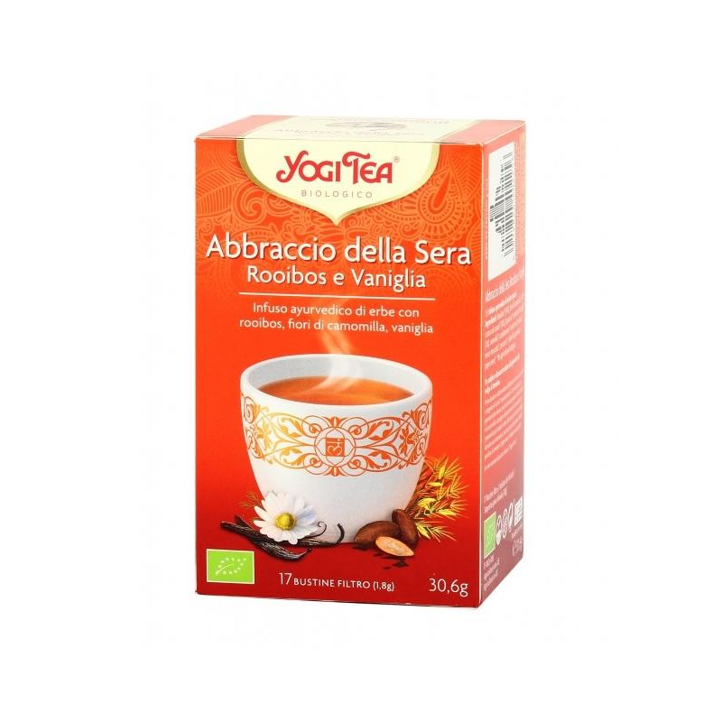 Evening Embrace Rooibos y Vainilla Relájese y respire el encantador aroma de YOGI TEA. Esta deliciosa infusión es una combinación de dulce y cremoso rooibos, delicada manzanilla y suave melisa. El intenso aroma a cacao, la dulce vainilla y un toque de nuez moscada añaden un sabor cálido y relajante, perfecto para un sorbo relajante antes de acostarse. ¡Dulces sueños!