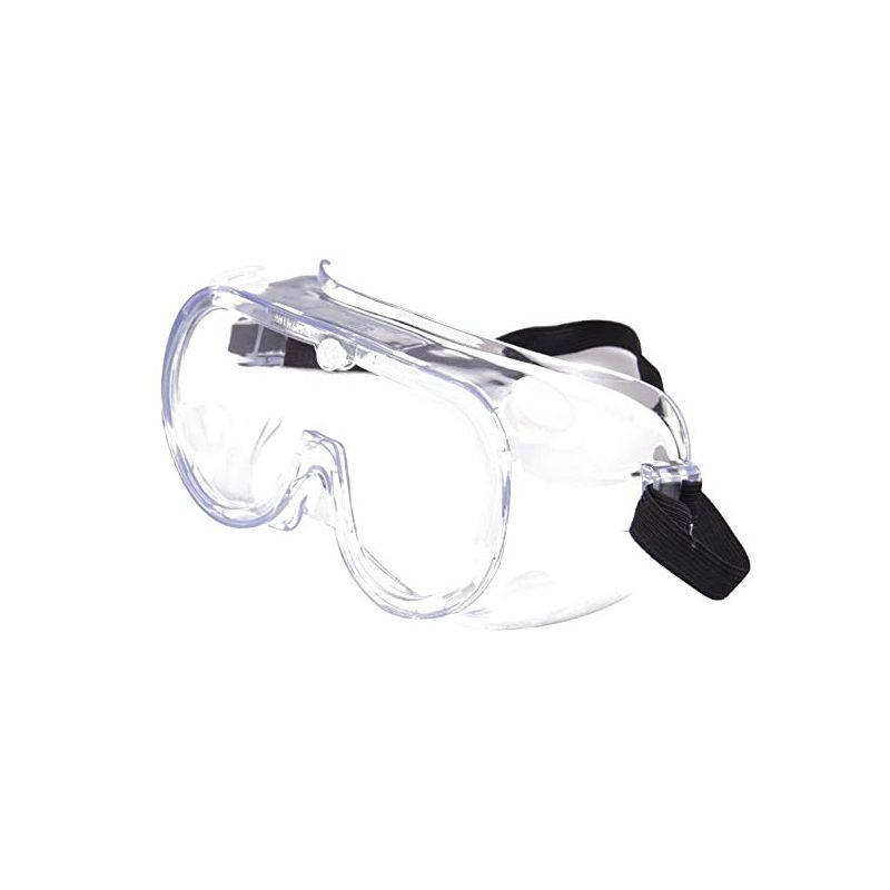 Lunettes de protection pour le travail avec l'acide formique et d'autres acides. Avec monture élastique adaptable à la tête, trous latéraux permettant une ventilation directe.