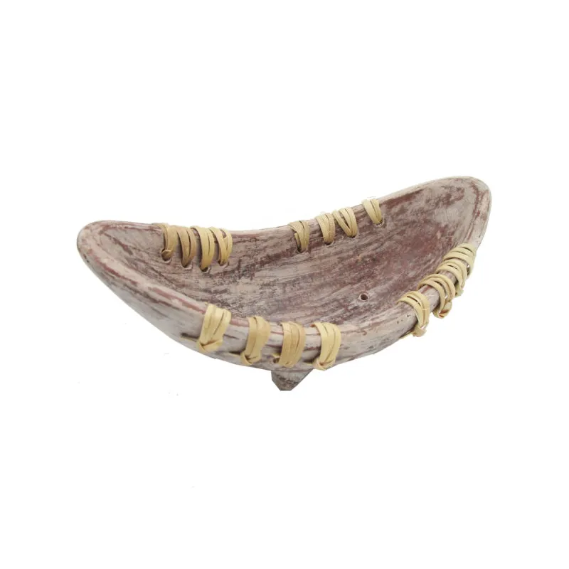 Brûleur bateau « Wash » en terre cuite et rotin avec petit pieds, dimensions 19 x 7 cm