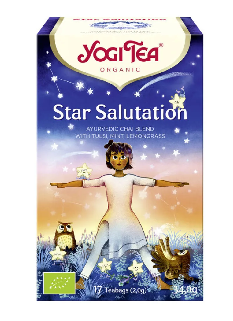Saluer les étoilesSaluer les étoiles permet d'ouvrir l'esprit et de dynamiser le corps. Il peut être pratiqué le matin ou en fin de journée, lorsque la fatigue et le stress se font sentir. Cette pratique de yoga comprend plusieurs asanas (postures) qui sont exécutées dans ce que l'on appelle un flux et accompagnées par la respiration. Les postures sont dédiées aux étoiles et à l'univers tout entier. Saluer les étoiles favorise l'équilibre et la connexion, a un effet énergisant sur le corps et ouvre le mental et l'esprit. TULSII Le tulsi, également connu sous le nom de basilic sacré ou basilic indien, est une variété de basilic particulièrement aromatique de la famille des labiées. Ses origines s'étendent de l'Asie tropicale et subtropicale au nord de l'Australie. Dans l'Ayurveda, le Tulsi est considéré comme le "roi des herbes". En raison de ses nombreuses propriétés positives, il est vénéré comme l'"élixir de vie". Son arôme rappelle celui du clou de girofle et du piment de la Jamaïque. CITRONELLE Un croisement entre la menthe aquatique et la menthe sauvage découvert seulement en 1696 et probablement par hasard, elle est devenue l'une des plantes les plus connues au monde. La menthe poivrée est appréciée dans le monde entier pour son arôme rafraîchissant et son goût légèrement et agréablement épicé. CITRONELLE La citronnelle contient des huiles essentielles et a un goût nettement frais et piquant. L'origine de cette plante de la famille des Gramineae, principalement utilisée dans la cuisine asiatique, n'est pas encore claire. PréparationVerser 250 ml d'eau bouillante sur le filtre. Laisser infuser pendant 5 minutes ou plus longtemps pour un goût plus prononcé.