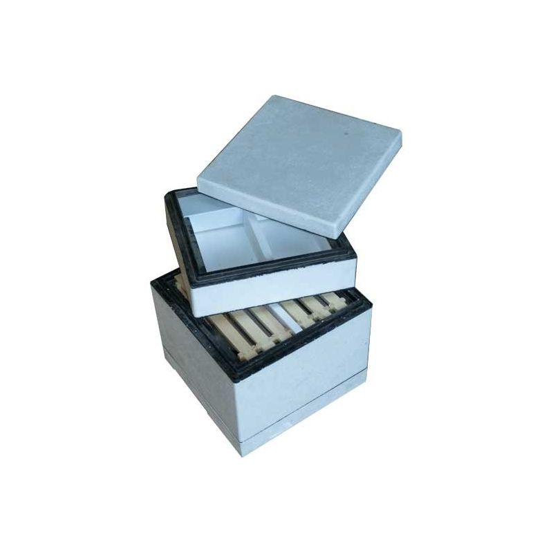 ARNIA DI FECONDAZIONE in POLISTIROLO per 2 NUCLEI COMPLETA DI 3 TELAINI mezzi melario ognuno, 2 entrate separate fronte e retro per i 2 nuclei, NUTRITORE e COPRIFAVO 'LYSON' - Dimensioni 30 x 30 x H 35 cm