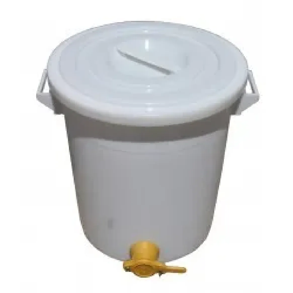 50 kg FOOD PLASTIC HONEY MILLER mit Deckel und WasserhahnDurchmesser: 39 cm - Höhe: 41 cmGeschnittenes NYLONROHR 40 mmVolumen 35 LiterDurchmesser: 39 cm - Höhe: 41 cm