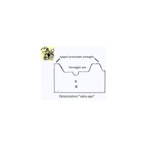 Er ermöglicht den Bienen zwei Durchgänge: einen unter dem Oberträger des Rähmchens und einen zwischen der Seitenfläche des Rähmchens und der Beutenwand.