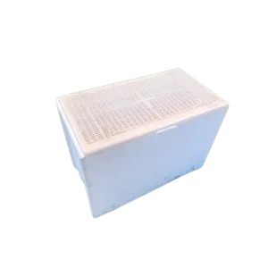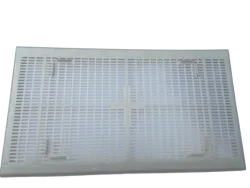 Luftiger, recyclebarer Kunststoff-Transportdeckel für D.B. 6-zargige Styroporbeuten Komplett mit Klappen, die ein Stapeln der Beuten während des Transports ermöglichenPassend für DADANT 6-zargige Styroporbeuten, Wandstärke 20 mmAbmessungen des Deckels: 49,5 x 27,5 cmAbmessungen des Beuteninneren: 47 x 23,2 cm