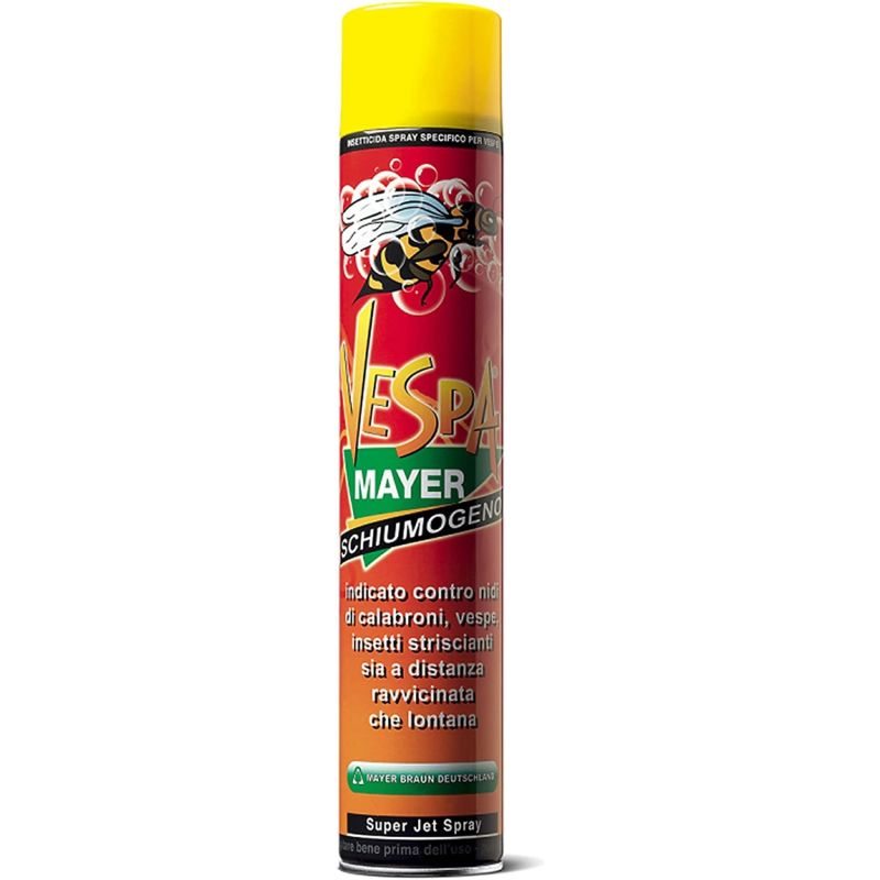 EIGENSCHAFTEN Schaumsprüh-Insektizid für die Bekämpfung von Wespennestern und anderen Insekten, ausgestattet mit einem Spezialventil, das Wespen- und Hornissennester aus einer Entfernung von 4-5 Metern mit Schaum bedecken kann. Es garantiert maximale Sicherheit, da sich das Produkt nicht als Aerosol verteilt und die Dämpfe nicht eingeatmet werden, das Produkt haftet und tropft nicht. Unverzichtbar für eine schnelle und präzise Schädlingsbekämpfung, geeignet für den Innen- und Außenbereich. Anzuwenden in der Industrie, in Gemeinden, in Haushalten, auf Campingplätzen; überall dort, wo Wespen und andere gefährliche Insekten ein Nest bauen.