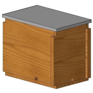 Befruchtungskern, in dem auch die geborenen Königinnen abgestellt werden können, mit Innenauskleidung aus 20 mm starkem Styropor mit Blechdach; Boden mit 4 hohlen Auslässen (einer für jeden Kern), mit 4 verschiedenen Richtungen