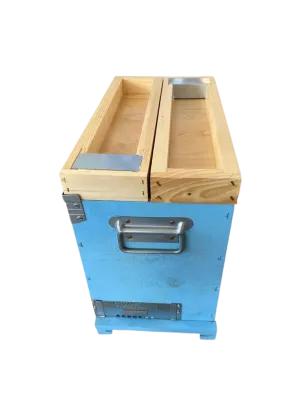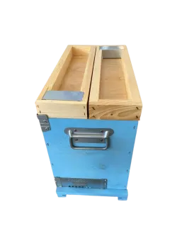 Ableger mit 6 Rähmchen zur Befruchtung von Bienenköniginnen, der Länge nach geteilt, mit POLYSTYREN-Seiten, lackiert Für 2 Befruchtungskerne Der Kern ist durch ein verzinktes Blech in zwei Abteile unterteilt. Jedes Abteil kann 3 D.B.-Rähmchen enthalten - Rähmchen NICHT inbegriffenMit 2 Futterdeckeln (einer für jedes Abteil), beweglichem Boden mit Haken und elektrisch geschweißtem DachAbmessungen der Bienenbeute: 51,5 x 29,5 x h 45 cm - Gewicht 9 Kg(DIE FARBE AUF DEM FOTO IST TÄGLICH UND ABHÄNGIG VON DER VERFÜGBARKEIT)