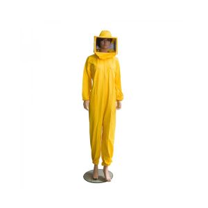 Imkeranzug aus Baumwolle mit vorderem Reißverschluss und rundem Schweißkragen zur Befestigung der abnehmbaren quadratischen Aluminiumnetzmaske mit Elastikband.