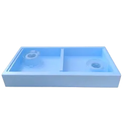 Der Boden ist so geneigt, dass das flüssige Futter möglichst in das Tränkebecken fließt. Der „DUAL“-Futtertrog wird komplett mit Vulkan Art.-Nr. C107 und halbtransparenter Kunststoffglocke Art.-Nr. C97 geliefert.