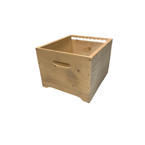 Bausatz für Dadant Blatt Beute in Würfelform mit 10 Waben, nur 4 Seiten montiert, unbehandelt. Seitenteile mit montierten Abstandshaltern