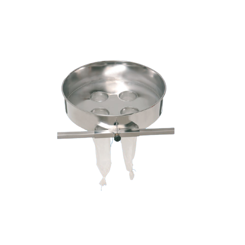 Professionelles Honigsieb aus rostfreiem Stahl - TIG-geschweißt - 4 Beutel (nicht im Lieferumfang enthalten) komplett mit verstellbarer Edelstahlrohrhalterung - für 400 kg und 2500 kg Reifungsmaschinen