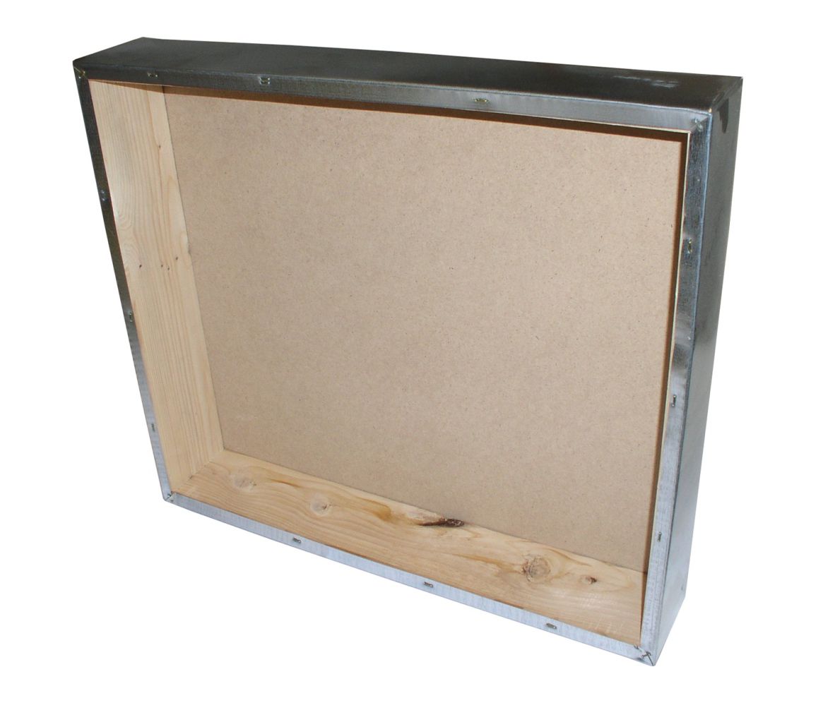 6-frame wooden and plywood honey comb tray with: 2.5-cm wooden fronts; 1.3-cm phenolic plywood sides and covers; anti-moth net bottom; 4-position disc; galvanized sheet metal front door; painted; with electro-galvanized sheet metal lid