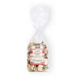 Stevia is used to produce a natural low-calorie sweetener. Its sweetening power is 300 times that of common sugar (sucrose) and the caloric value is zero, as is the cariogenic damage. Stevia is a plant that grows wild in South America. It was called "Ka'a He'-e" by the Indians, a term that can be translated as "sweet herb." What makes Stevia sweet is a pair of chemicals in the leaves: stevioside and rebaudioside. Size100 g bag Ingredients:Sweeteners: isomalt, steviol glycosides (extracted from stevia), propolis (1%) Excessive consumption may have laxative effects