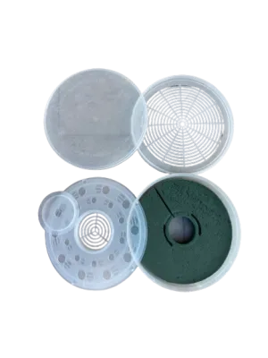 MHT DOSER DISPENCER OF FORMIC AND ACETIC ACID ROTARY PLASTIC with adjustable evaporation areaDim: Diameter 17 cm - Height 4.5 cmThe dispenser is equipped with airtight lid that allows filling before useUse with formic acid from 60% to 85% - Can be reused.Kit consists of: Airtight lid, fixed grid, adjustable grid, container with absorbent sponge