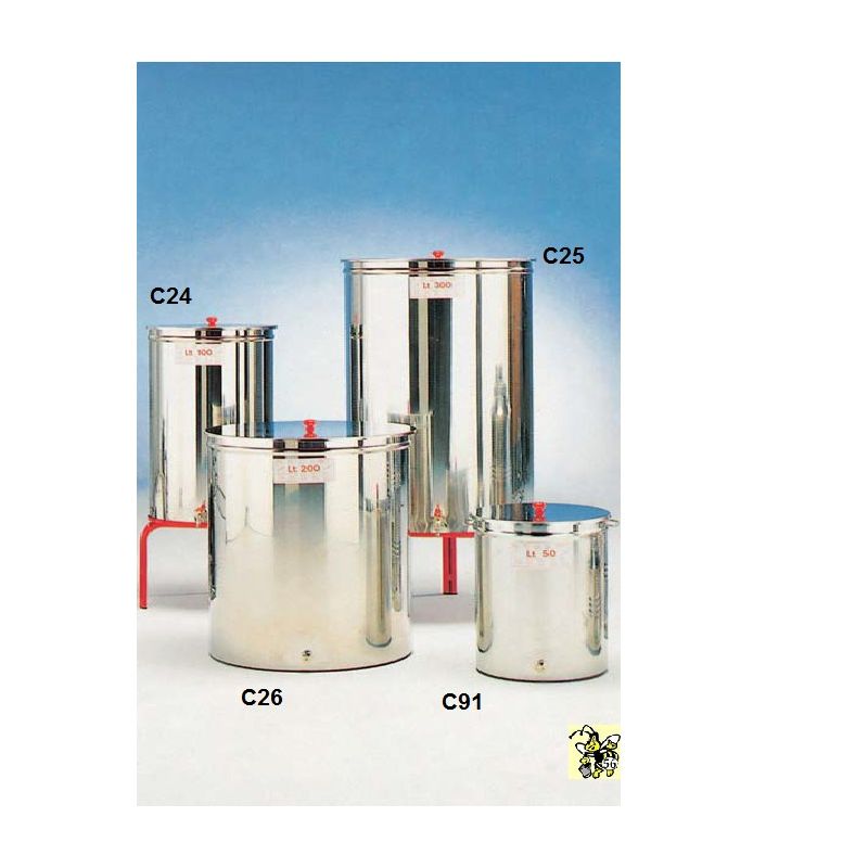 Stainless steel food-grade TIG-welded food storage container, 75-liter capacity.