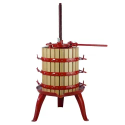 Wax or WINE OPERATOR - Ø 35 cm - Ratchet with 1-speed mechanical movement - Pressed steel basin - High-strength steel screw - Beech wood staves fixed with through bolts - equipped with 6 caps and 2 crescents. Dimensions : Cage 35 x 50 cm - capacity 48 L Screw diameter 40 mm Weight 57 Kg MADE IN ITALY