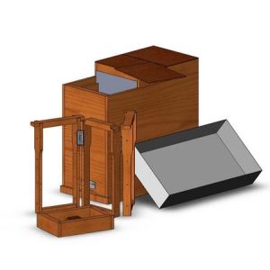 Fixed anti-varroa mesh bottom; wooden cable cover; 4-position aluminum disc; electro-welded sheet metal lid; metal door; galvanized sheet metal tray; 6-notch spacers.