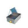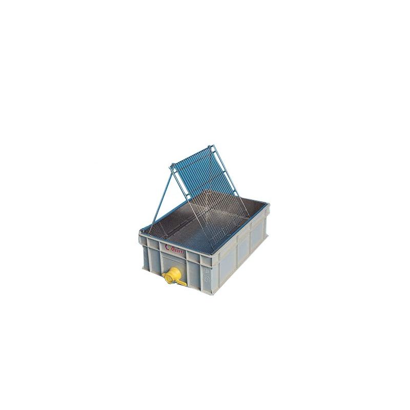 Banco de desoperculación de nylon con filtro de goteo de acero inoxidable - 60x40x28 cm TANQUE con soporte de acero inoxidable (Código QI L11) y válvula de cizallamiento de 40 mm (Código QI R11)