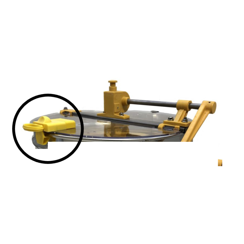 CIERRE PARA TAPA DE EXTRACTOR MANUAL Aplicable en tapas de extractores de miel con diámetro 370/525/620/700 mm Mango de agarre ergonómico Se atornilla a la tapa del extractor de miel Fabricado en plástico ABS Si el extractor de miel manual se motoriza, se puede añadir un módulo adicional para el cierre de la tapa, con cierre temporizado. (Art.S134C80)