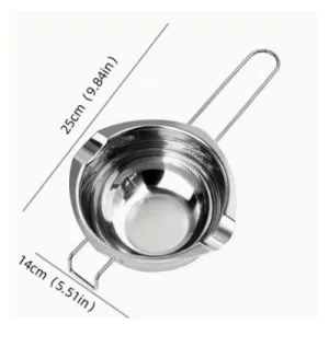 Recipiente de acero inoxidable con asas de apoyo. Dimensiones: 14 x 25 cm Resistente a la corrosión, duradero ¡Ideal para derretir cera al baño maría y hacer maravillosas velas! También se puede utilizar para fundir chocolate y otros alimentos.