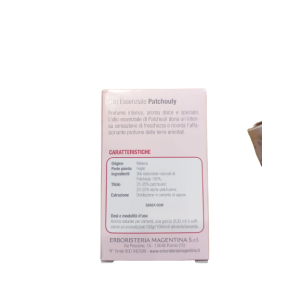 Marca: Erboristeria Magentina Aceite esencial 100% puro y natural de Pogostemon cablin Sin aditivos. Indicaciones Cuidado de la piel, depresión, diarrea, insomnio, histeria, palpitaciones, tensión nerviosa.