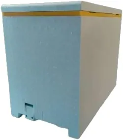 Alza de poliestireno de alta densidad de color azul pastel para colmenas de poliestireno de 6 cuadros. Forma especial que facilita la inserción y elevación del panal.