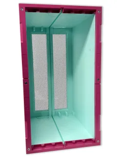 D.B. COLMENA 6 panales de poliestireno de alta densidad (80)Doble red antipolillas en la parte inferior fija 77x375Doble apertura delantera y traseraDistanciadores antimoho en el fondoColores azul claro/verde pastel según disponibilidadCon tapa de cierre de poliestirenoDimensiones exteriores 275 x 495 mmPies de apoyo colocados en los laterales con longitud totalCompleto con borde superior de plástico rosa (ABS) para reforzar los separadores y los bordes lateralesPuede dividirse en 2 colonias de abejas (3 + 3 marcos)Con ranuras interiores para alojar el diafragma divisorioGuías de chapa galvanizada para el fondo - PARA INSERCIÓN INFERIOR opcional Art.F56Diafragma de acero inoxidable para dividir una colmena de 6 en 3+3 no incluido (Código D45)Diafragma FAESTE para dividir una colmena de 6 en 3+3 no incluido (Código D48) - Piezas de recambio 41) Puerta de poliestireno (Código QI P21)42) Tapa de poliestireno (Código QI C16B) Ver accesorios más abajo