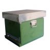 Colmena cubo D.B. de 10 marcos con fondo fijo pintado, completa con : Nido con 10 marcos montados taladrados y roscados; tapa de madera con disco de chapa montado de 4 posiciones; tapa de chapa galvanizada de 10 cm de altura forrada de madera; puerta metálica; 3 esquinas de conexión; separadores montados en el nido fondo fijo red antipolillas con fondo de chapa galvanizada desmontable por la parte trasera; madera de abeto sazonada de 25 mm de grosor; paredes montadas con tornillos; asas para transporte; Soporte para palanca