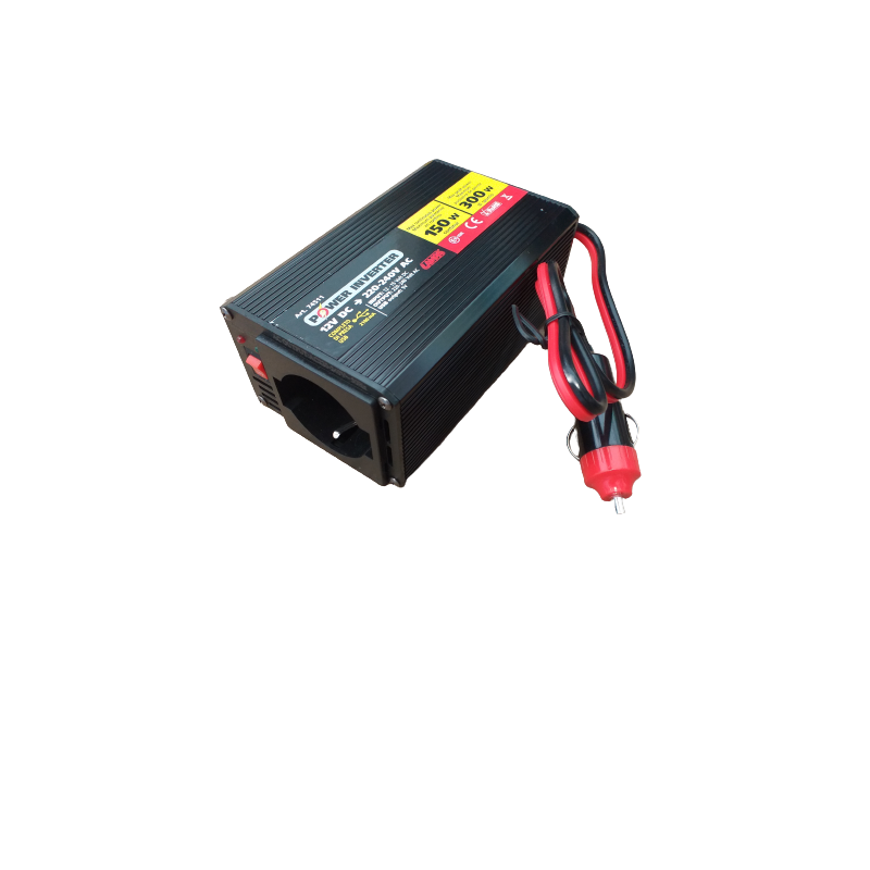 FUENTE DE ALIMENTACIÓN DEL INVERSOR ENTRADA 12 V= (ENCHUFE DEL ENCENDEDOR DEL VEHÍCULO) - SALIDA 220 V - 50 Hz CON ENCHUFE UNIVERSAL EUROPEO POTENCIA : 300 W de arranque - 150 W continuos PROTECCIÓN ELÉCTRICA DE SEGURIDAD (fusibles)