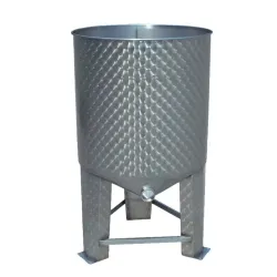 MÁQUINA DOSIFICADORA DE ACERO INOXIDABLE 400 kg- 3 patas soldadas TIGv- descarga fontal totalPreparada para caño de 50/2" mm de diámetro NO INCLUIDOFondo inclinado con descarga frontal totalTambor interior de acero inoxidable de 1 mm de espesorTapa guardapolvo con pomoDiseñada para ser utilizada como alimentador de máquinas dosificadoras de miel.