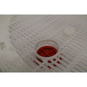 Practical plastic cage for queen caging Size: 47.5 x 26.5 cm You open the colored side cap and insert the queen. There are three openings in the device that will facilitate the queen's exit when deciding to cage. Reacceptance by the family will occur naturally, and the resumption of laying will be immediate and quick in quantity. RED REPLACEMENT CAP (Code ME TA) (SEE ANNEX)