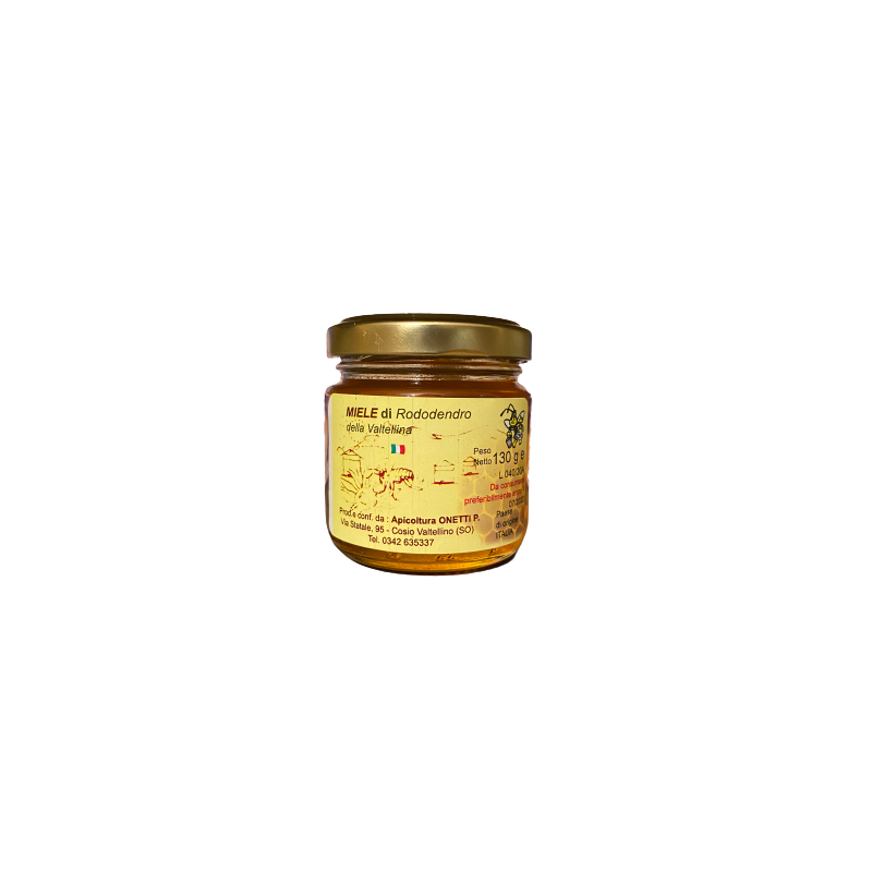 MIEL RODODENDER DE VALTELLINA, PESO NETO 130 g Producido y envasado por :Apicoltura ONETTI P. Via Statale ,95 Cosio Valtellino (SO)- Tel. 0342 635337 País de origen :ITALIA Condiciones de almacenamiento: conservar a temperatura ambiente en lugar seco DOCUMENTO ADJUNTO EN LA SECCIÓN (DESCARGA)