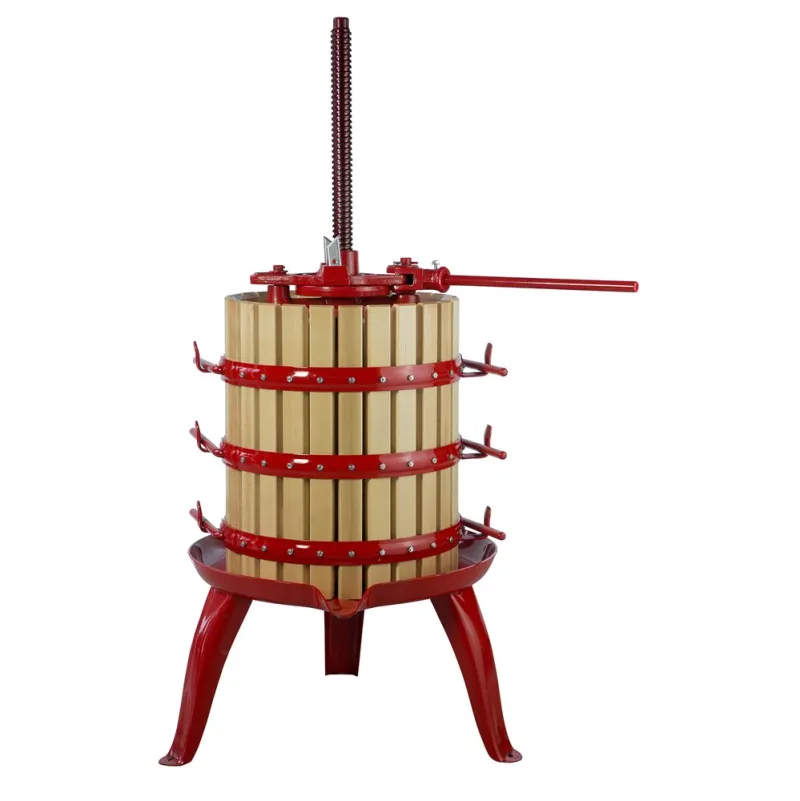 CERA O VINO TURQUESA - Ø 50 cm - Carraca con movimiento mecánico de 1 velocidad - Cubeta de acero prensado - Tornillo de acero de alta resistencia - Duelas de madera de haya fijadas con tornillos pasantes - Equipada con 6 tapones y 2 medias lunas. Dimensiones: Jaula 50 x 65 cm - capacidad 127 L Diámetro del tornillo 50 mm Peso 107 Kg MADE IN ITALY