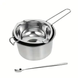 Bain-marie en acier inoxydable, bec verseur, avec bol à fondre et cuillère à mélangerCompatible avec les plaques de cuisson à gaz, électriques et à inductionCapacité : environ 400 g