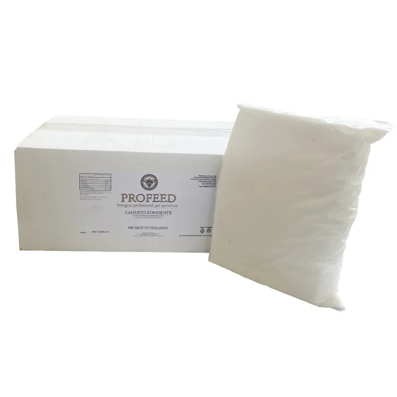 Le CANDIFRUCT est une pâte composée de sucre (saccharose) avec une addition équilibrée de sirop de glucose-fructose, obtenue par un procédé de vaporisation douce. Grâce à ses cristaux très fins et à la présence de fructose, il est très appétent et facilement assimilable par les abeilles. La présence de fructose confère au produit douceur, moelleux et consistance et évite les problèmes de durcissement. CANDIFRUCT est l'aliment idéal pour l'entretien hivernal des familles, surtout en l'absence de stocks. e. C'est un produit très pratique car il peut être donné aux abeilles sans avoir recours à des nourrisseurs spécifiques.
