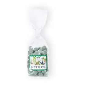 CARAMELS AU PIN PEMME Ingrédients : Sucre, sirop de glucose, huile essentielle de pin de montagne (0,3%), eucalyptol, arôme. Colorant E / 141 Peut contenir des traces de graines de sésame, malt d'orge, lait. Informations nutritionnelles pour 100 g:Energie : 1649 KJ - 388 kcalGraisses : 0 g dont acides gras saturés 0 gGlucides : 97 g dont sucres 78 gProtéines : 0gSel : 0,06 g