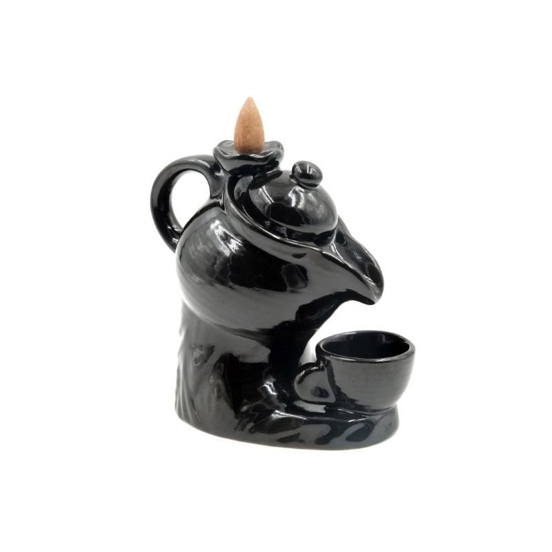 Brûleur à cône de contre-courant Matériau : céramique émaillée Taille : 11 x 7 cm - hauteur 12,5 cm Les brûleurs à cône de contre-courant sont des accessoires indispensables pour créer la magie et l'atmosphère des cascades de fumée. Grâce à la synergie entre ces objets en céramique émaillée et les cônes de refoulement aromatiques, votre ambiance recevra une touche d'originalité, et vous vous sentirez plongé dans une atmosphère zen et relaxante. Comment fonctionnent les cônes BACKFLOW ? Tout réside dans leur composition particulière, leur forme et les brûleurs utilisés. Les cônes Backflow se sont imposés ces derniers temps comme un produit à succès.