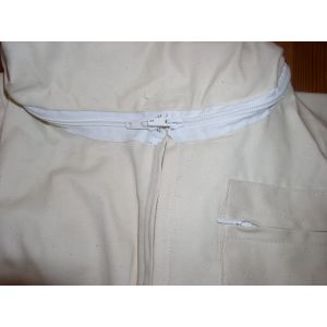 Salopette d'apiculteur, masque avec fermeture éclair entièrement détachable. Poignets et chevilles avec élastiques. Deux poches sur le pantalon, une poche zippée sur la poitrine. Tailles disponibles : S, M, L, XL, XXL