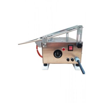 DISOPERCULATEUR ELECTRIQUE de table avec lame vibrante horizontale En acier inoxydable, très silencieux, avec une lame dentelée de 300 mm de long, chauffée électriquement, contrôlée par thermostat et oscillant horizontalement au moyen d'un petit ALIM. 220 V-50 Hz Capacité de 150 peignes/heure. Fonctionne parfaitement sur nos tables de désoperculage ou sur notre chariot de désoperculage.