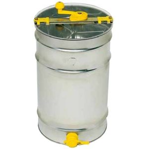2 Mélangeur manuel LANGSTROTH TANGENZIAL pour 3 nids d'abeilles - diamètre 370 mm - TABLE-TOP Avec panier en acier inoxydable (code panier QI C41) - avec robinet en plastique diamètre 40 mm - transmission avec engrenages en nylon