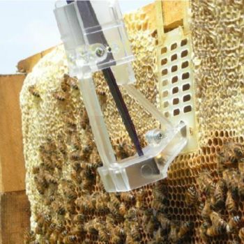 Attrape-reines avec fourche de serrage de la reine pour le marquage La fourche de serrage de la reine permet de fixer la reine sur le nid d'abeilles pour le marquage. La reine est capturée et placée dans le kit de transport. Elle est ensuite introduite dans la cage du bloc de couvain (MO 001) à l'aide de cette pince à reine.