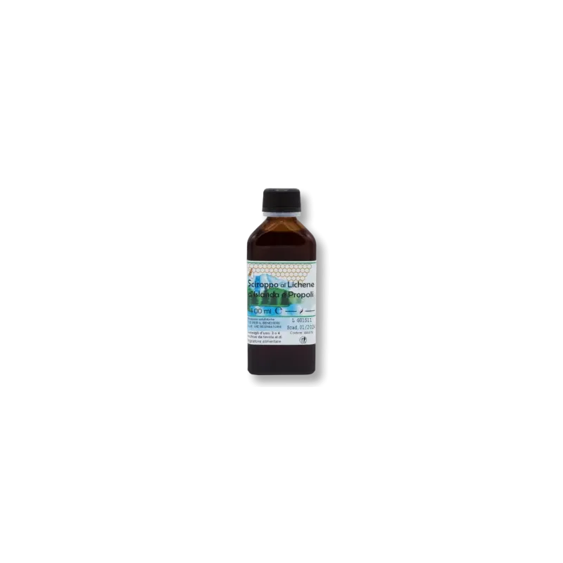 Sirop de lichen islandais et de propolis. 200 ml Utile pour le bien-être des voies respiratoires INGRÉDIENTS : fructose, extrait de propolis, Rosa canina, pin pumilus, polygala, lichen d'Islande, baume de Tolu, miel, mélisse, arôme o. e. citron, orange et framboise AVERTISSEMENTS : Ne pas prendre pendant la grossesse. Ne pas dépasser la dose recommandée. Les compléments ne doivent pas être utilisés comme substitut d'un régime alimentaire varié.