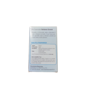 Marque : Erboristeria Magentina Huile essentielle 100% pure et naturelle de Lippia citriodora. Sans additifs. Indications Anxiété, stress, insomnie, mauvaise digestion, crampes. Indications d'utilisation Pour un bain aromatique, diluer 10 gouttes dans une cuillère à soupe de mousse de bain, puis dissoudre dans l'eau du bain. Pour les massages ou autres applications sur la peau, diluer abondamment dans une huile ou une crème.