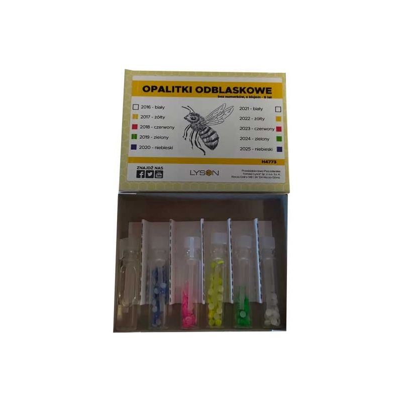 OPALI - plaques phosphorescentes colorées à appliquer sur les reines d'abeillesKIT de 5 tubes de 5 couleurs avec GLUE (code HY OPAL2)Un tube contient 60 plaques phosphorescentes.