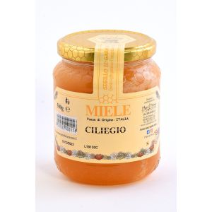 Miel de cerise, le produit peut apparaître cristallisé. Le miel de cerise est de couleur claire, presque grisâtre lorsqu'il est cristallisé ; l'arôme, d'abord doux et avec une pointe d'amertume, rappelle les noyaux de cerise ou les amandes amères. PAYS DE PRODUCTION : ITALIE Conditions de conservation : à conserver à température ambiante dans un endroit sec Conditionnement en pots de 500 g ou 1 kg