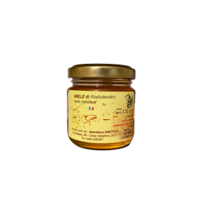 MIEL RODODENDER DE VALTELLINE, POIDS NET 130 g Produit et conditionné par :Apicoltura ONETTI P. Via Statale ,95 Cosio Valtellino (SO)- Tel. 0342 635337 Pays d'origine :ITALIE Conditions de conservation : à conserver à température ambiante dans un endroit sec DOCUMENT ANNEXÉ DANS LA SECTION (TÉLÉCHARGEMENT)